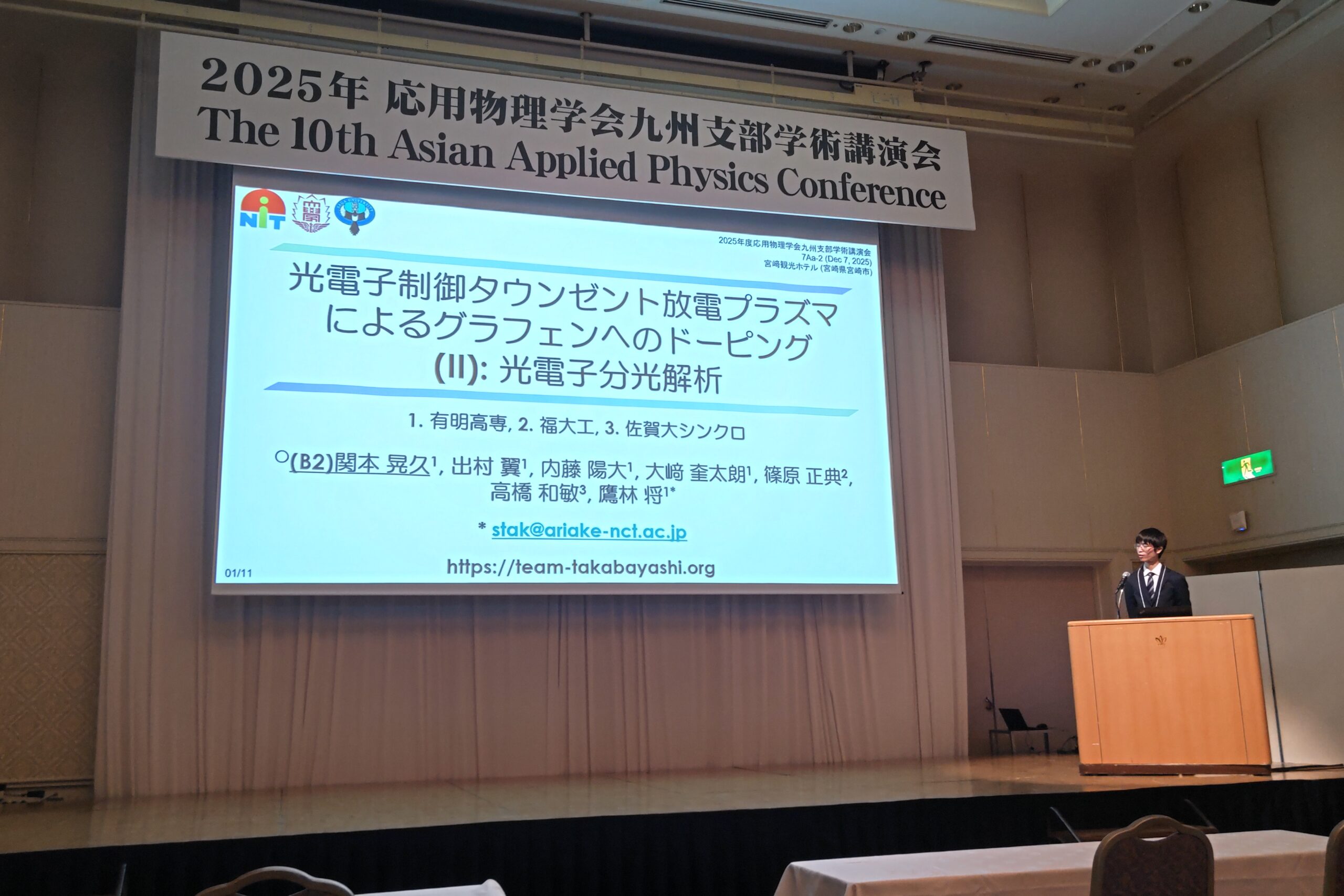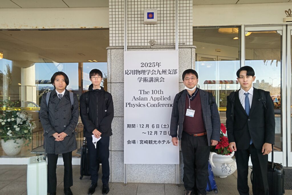 今回は、私も含めて全員1件ずつの計4件の発表としました。私が支部大会で話すのは、こちらへ来て日も浅かった2021年度の日本表面真空学会以来です。当時は研究室を立ち上げたばかりであり、九州の先生方ともご縁が薄く、コロナ禍で研究室からオンラインで交流もなくと、な~んにもなかった頃でした。着任してたった6年弱でよくここまで来られたものです。歴代の優秀な学生さん達のおかげです。