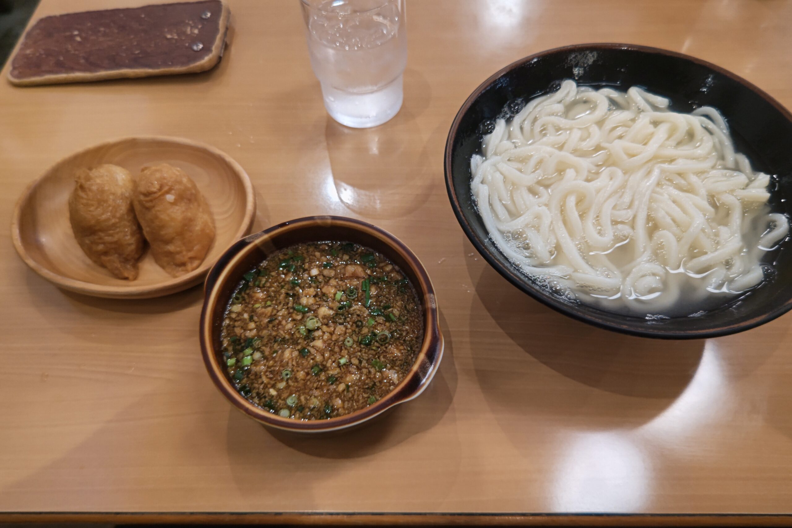会場近くに釜揚げうどんのお店を見つけて、昼食はそこで取りました。ちょうど開店間もない時間帯に訪れましたが、既にそこそこ行列ができていました。急ぐ理由もないので、並んで少し待ちました。