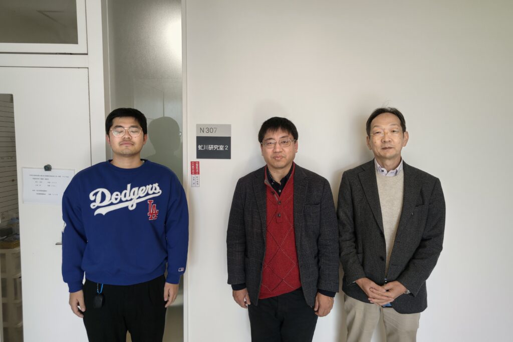 昨春鷹林研究室を巣立った福田 旺土君は、この多元研に大学院生として進学しました(大学院理学研究科 物理学専攻)。今回は、進学先である虻川研究室の虻川 匡司教授と福田君との共同研究打ち合わせのためにやって来たわけです。