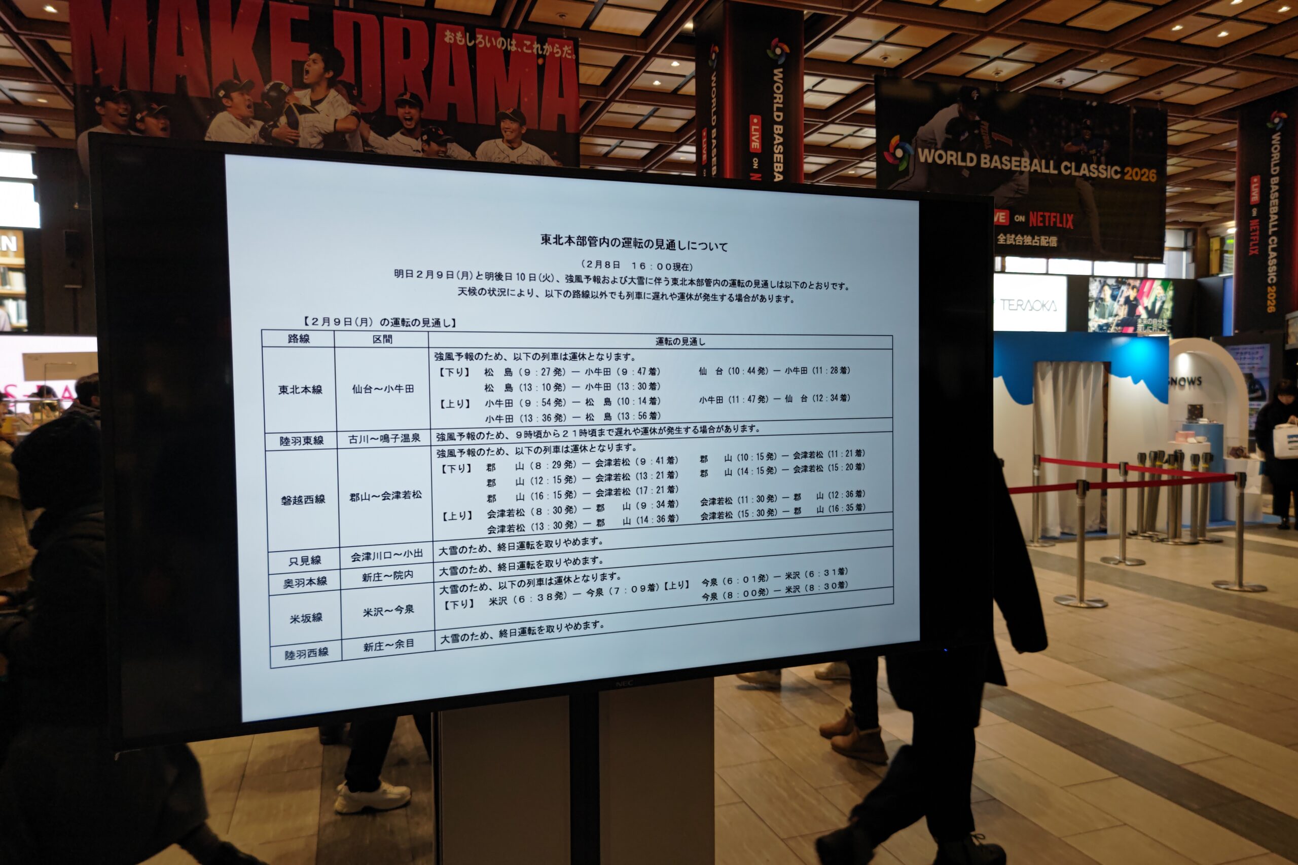 とはいえ、仙台駅での掲示板では運休が相次いでいました。