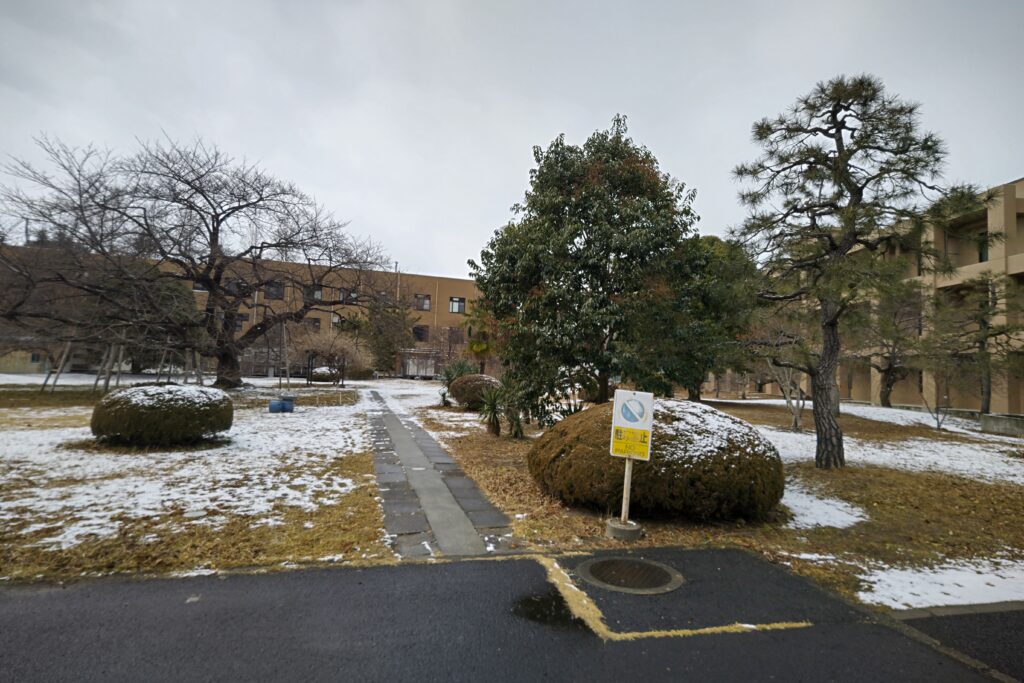 目的の東北大学 片平キャンパス内にある同学多元物質科学研究所(多元研)の科学計測研究棟は、仙台駅から歩いて行ける距離にあります。都心のキャンパスです。当然、その中庭にも少し積雪です。