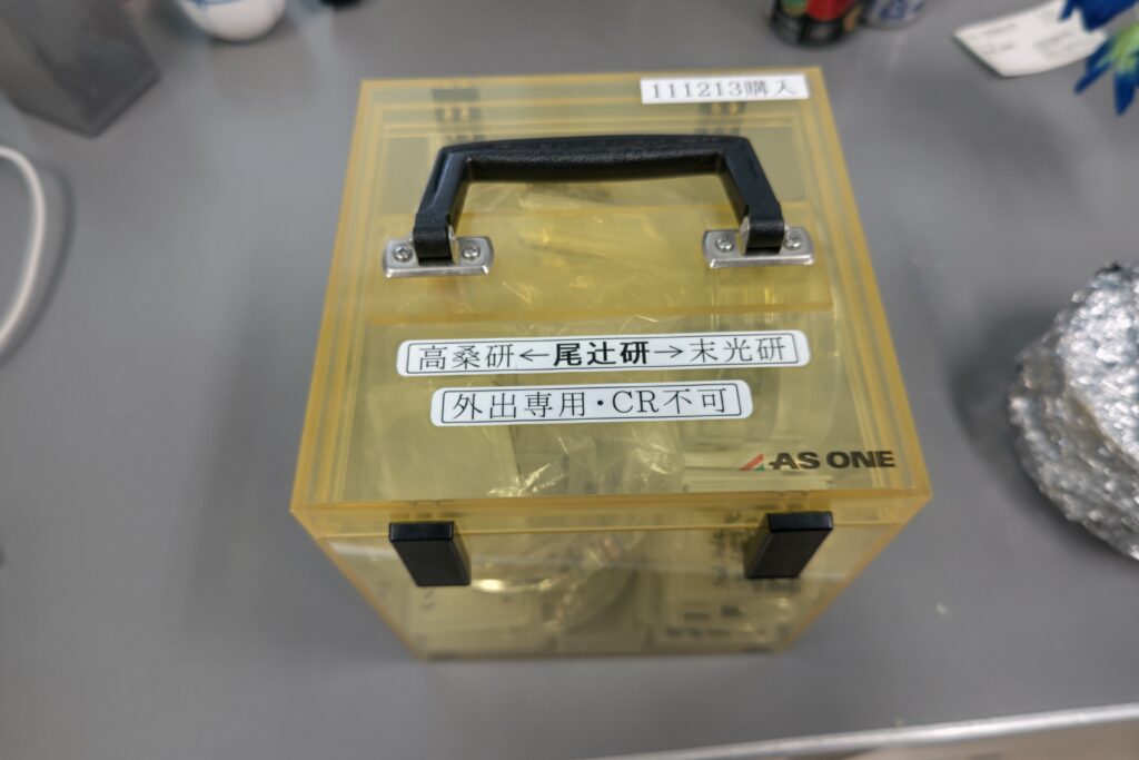 虻川研究室は高桑研究室の後身です。2015年に仙台を去った際に荷物は全て持ち去ったはずでしたが、まだ残っていました。上記3研究室をキャンパス縦断するための実験セット入れが残っていました。懐かしいです。中身もそのままだったので、まるでタイムカプセルでした。当時は、来る日も来る日も手に持って片平キャンパスを縦断して実験しては、実験がうまく行かないなー、将来どうなるんだろうか、と大いに悩んだものです。しかし研究に時間がなかなか取れなくなった今となっては、昔に戻りたくあります。