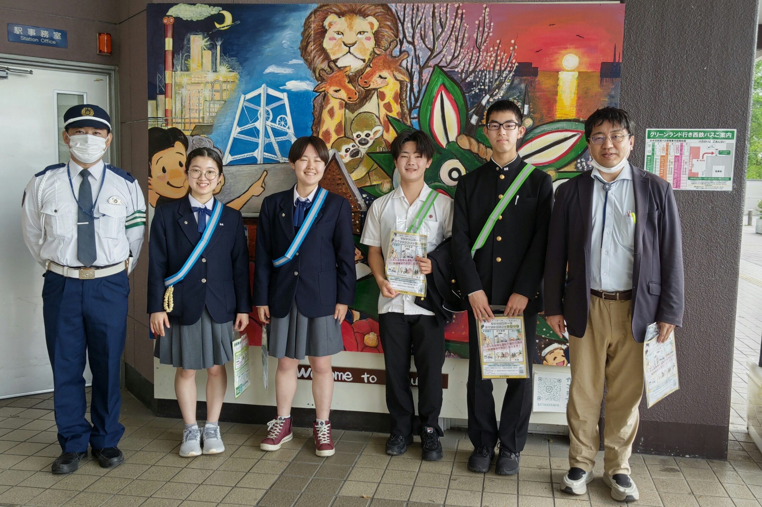 毎度西鉄側を担当しています。ちょうど通学時間帯ですが、自校の学生以外に配布しています。