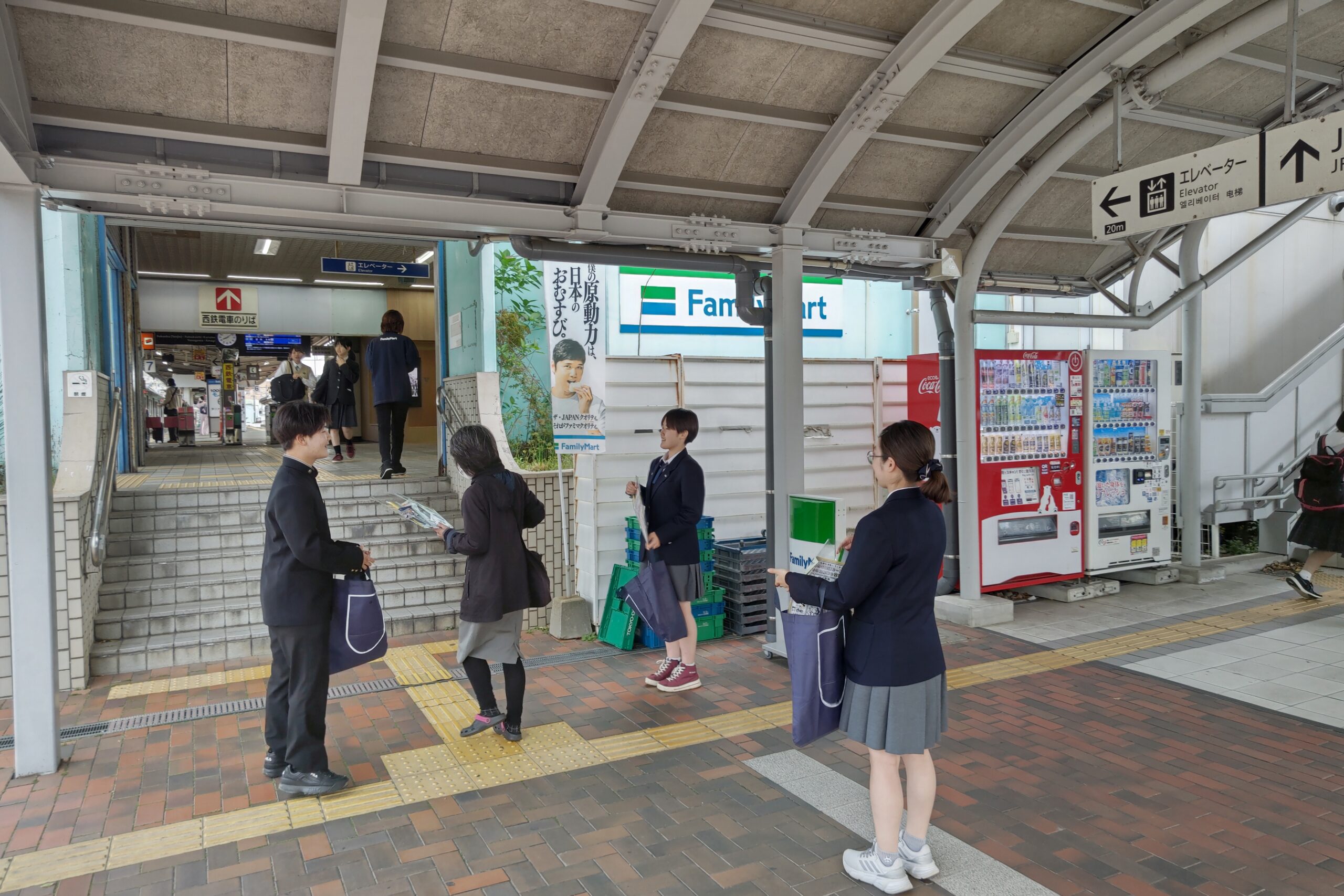 今年度は担任を降りた代わりに、学生主事室の学生委員に戻りました。そこで早速ですが、本日4/17(金)早朝の交通マナーアップ運動に参加しました。一昨年以来2年ぶりです。本運動は毎年4回、大牟田地区高等学校交通安全対策連絡協議会と大牟田警察署で実施している運動です。開催場所は大牟田駅です。JR側西鉄側両方で行っています。