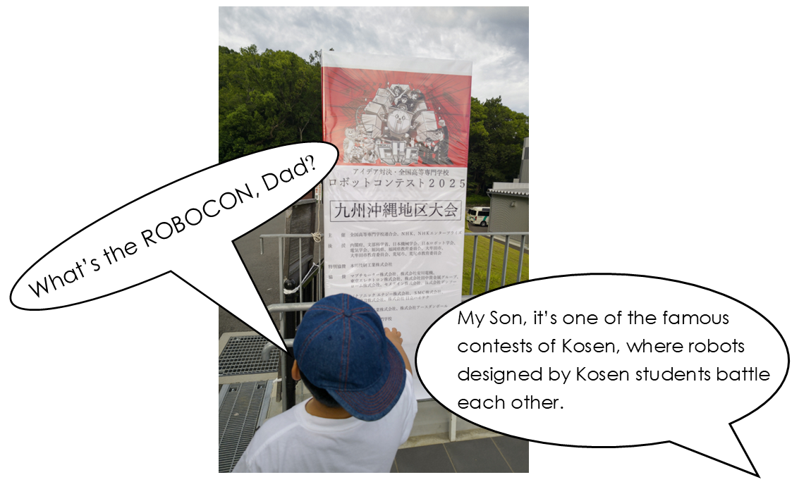 2025/09 お息子さん、ロボコン: 看板 会場は新築です。