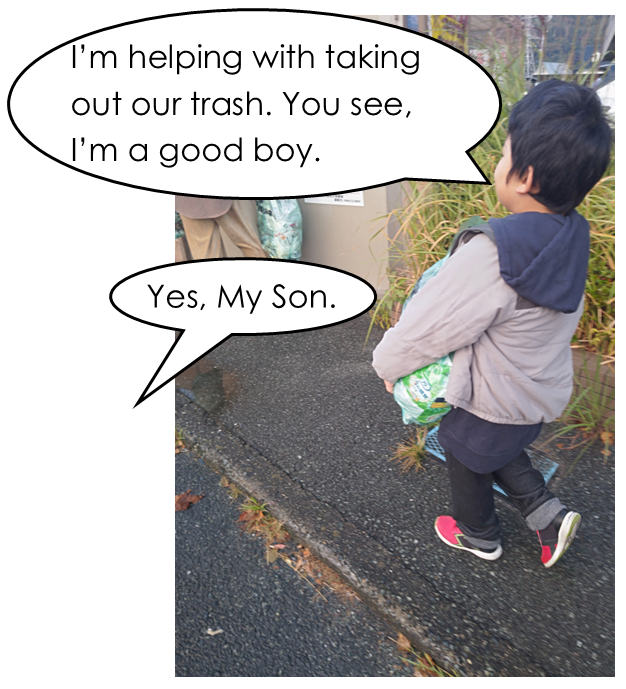 2025/11 お息子さんのお手伝い: ゴミ出し スーパーマーケット。